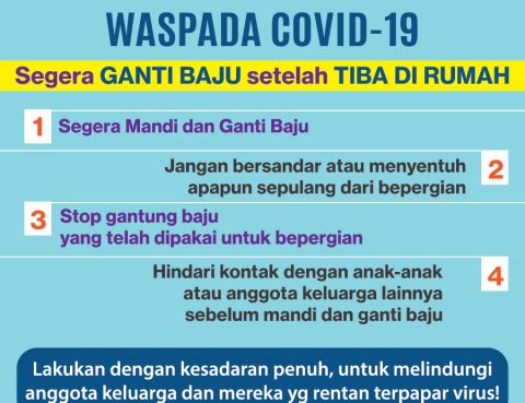 Waspada COVID-19 Hal sederhana namun penting dilakukan demi mencegah COVID-19 adalah : 1. Segerakan mandi dan ganti baju setelah tiba di rumah. 2. Jangan bersandar atau menyentuh apapun sepulang dari bepergian. 3. Stop gantung baju yang telah dipakai bepergian. 4. Hindari kontak dengan anak-anak atau anggota keluarga lainnya sebelum mandi dan ganti baju. Lakukan langkah…