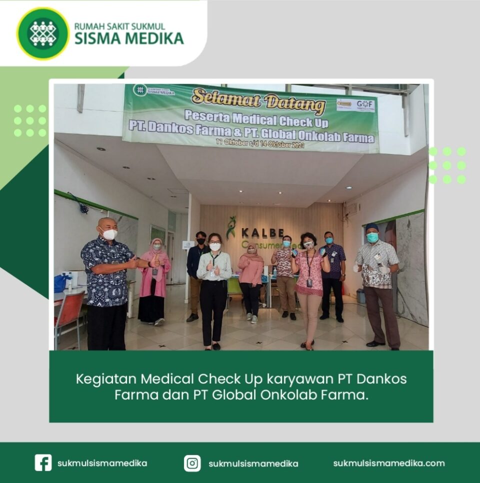 Kegiatan Medical Check Up karyawan PT Dankos Farma dan PT Global Onkolab Farma bekerjasama dengan RS Sukmul Sisma Medika. Medical Check Up berlangsung pada tanggal 11 oktober 2021-14 Oktober 2021 . Dengan jumlah peserta 1.022 karyawan .