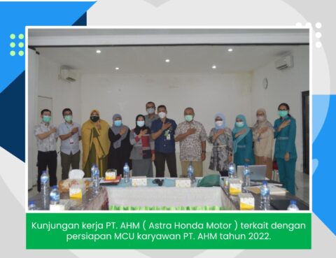 Sabtu (2/4/22) RS Sukmul Sisma Medika mendapat kunjungan kerja PT. AHM ( Astra Honda Motor ) terkait dengan persiapan MCU karyawan PT. AHM tahun 2022 di beberapa Plant. Rumah Sakit Sukmul Sisma Medika Jl. Tawes No.18, RT.5/RW.8, Tj. Priok, Kec. Koja, Kota Jkt Utara, Daerah Khusus Ibukota Jakarta 14220 021-430 1269 Website : sukmulsismamedika.com Sosial…