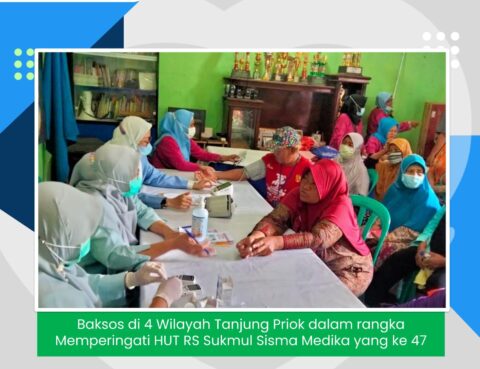 Dalam rangka memperingati HUT RS Sukmul Sisma Medika ke-47, RS Mengadakan Baksos di 4 Wilayah Tanjung Priok selama 2 hari (5-6 Desember 2022). Kegiatan meliputi pengecekan tensi darah, gula darah sewaktu, dan asam urat. Rumah Sakit Sukmul Sisma Medika Jl. Tawes No.18, RT.5/RW.8, Tj. Priok, Kec. Koja, Kota Jkt Utara, Daerah Khusus Ibukota Jakarta…